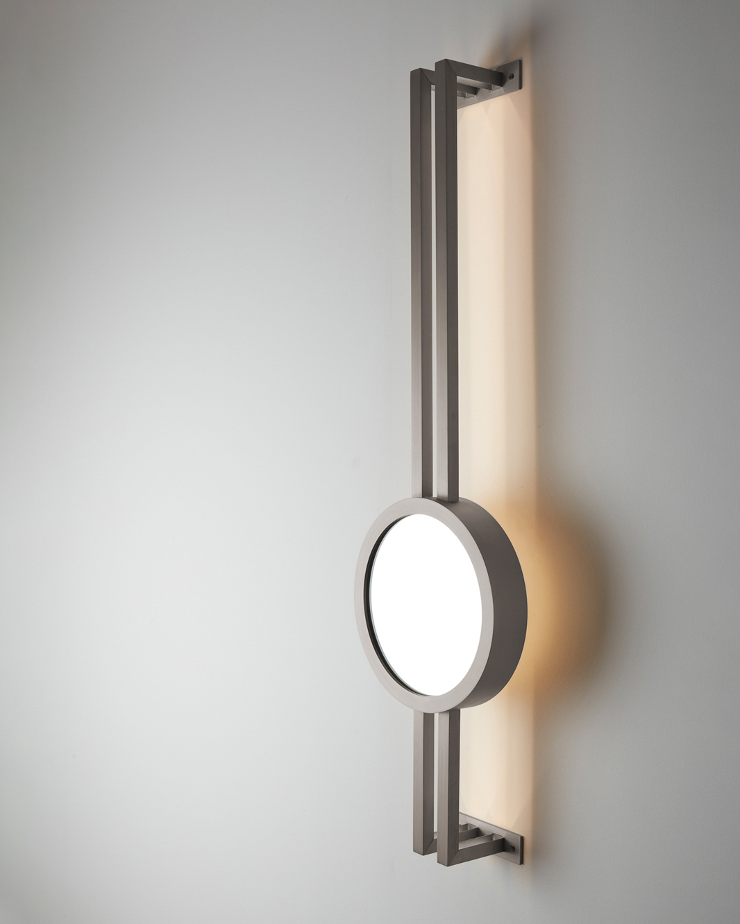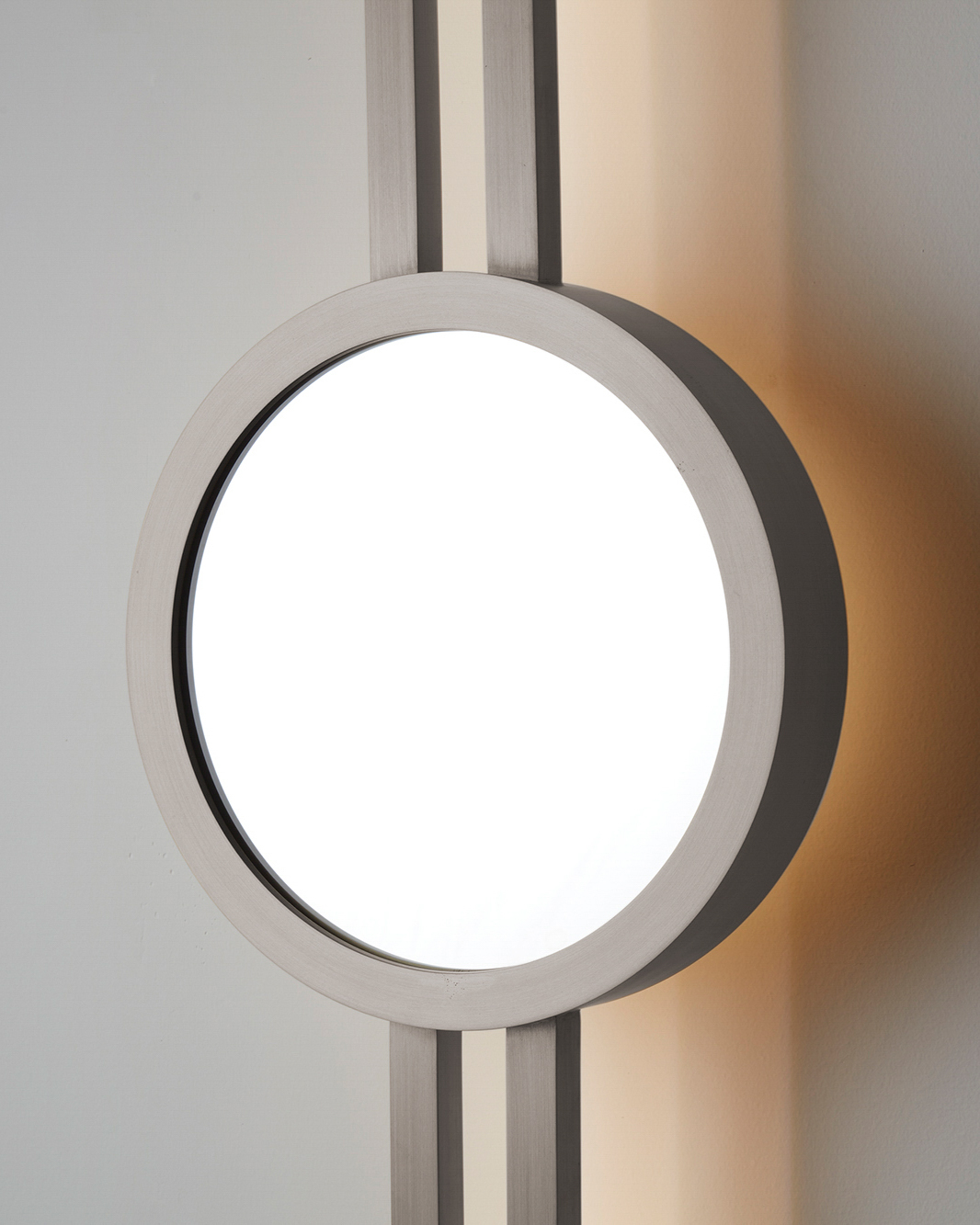 Mandolin evokes intimacy and warmth. Just like a serenade is meant for a special person, these backlit mirrors are intended to furtively capture the face and soul of someone. The sensuality of the brushed brass coupled with the playful mirror added to the soft warmth of the back lighting create a seductive scenography within any setting.